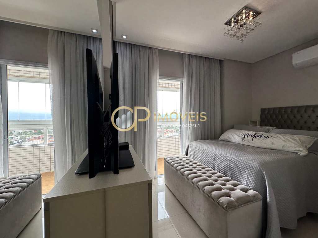 Lindo apartamento mobiliado a 200 metros da praia no bairro Tupi. São 96 m² de área útil, andar alto com vista para o mar, 2 vagas de garagem e prédio com lazer completo. Sala para 2 ambientes com ar condicionado, sacada gourmet com fechamento em vidros, cozinha com armários planejados, geladeira brastemp inverse, microondas e forno elétrico embutido, cooktop 5 bocas brastemp, área de serviço com máquina de lavar 11kg, banheiro social com box, 2 dormitórios sendo 1 suíte ambos com guarda roupa planejado e a suíte com ar condicionado. Prédio com portaria 24 horas e lazer completo, piscina climatizada adulto, piscina infantil, salão de jogos e festas, áre de churrasqueira, quadra de futebol, sauna, cinema, academia, mini mercado e armários hobby box para guardar itens de praia. Aceita financiamento e estuda imóvel em Praia Grande de menor valor e carro como parte de pagamento.